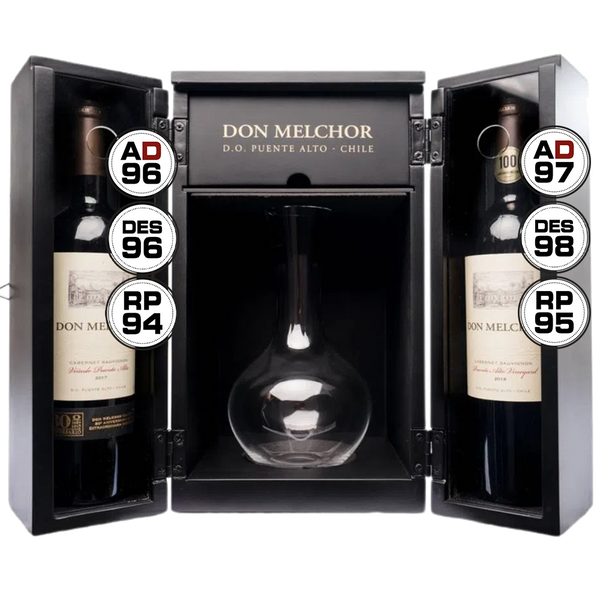 Kit exclusivo contendo as duas primeiras safras da nova linha de Don Melchor e um lindo decanter exclusivo.