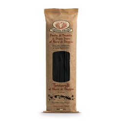 O Tonnarelli tem formato comprido e quadrado com o dobro da espessura do Spaghetti. O Tonnarelli Al Nero di Seppia Rustichella é produzido artesanalmente, com grano duro de altíssima qualidade e 100% Italiano.