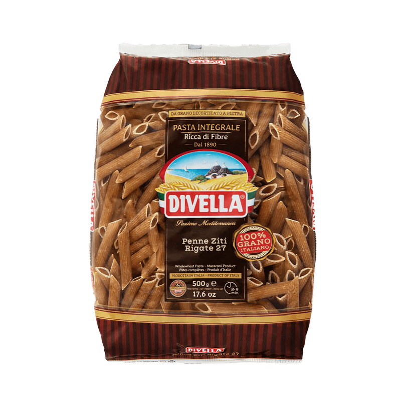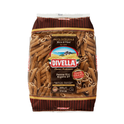 O Penne é uma das massas mais consumidas no mundo, típico da região da Campania e o mais tradicional prato feito a partir deste corte é o Penne all’arrabbiata. O penne integral Divella é rico em fibras, elaborado com farinha de grano duro integral.