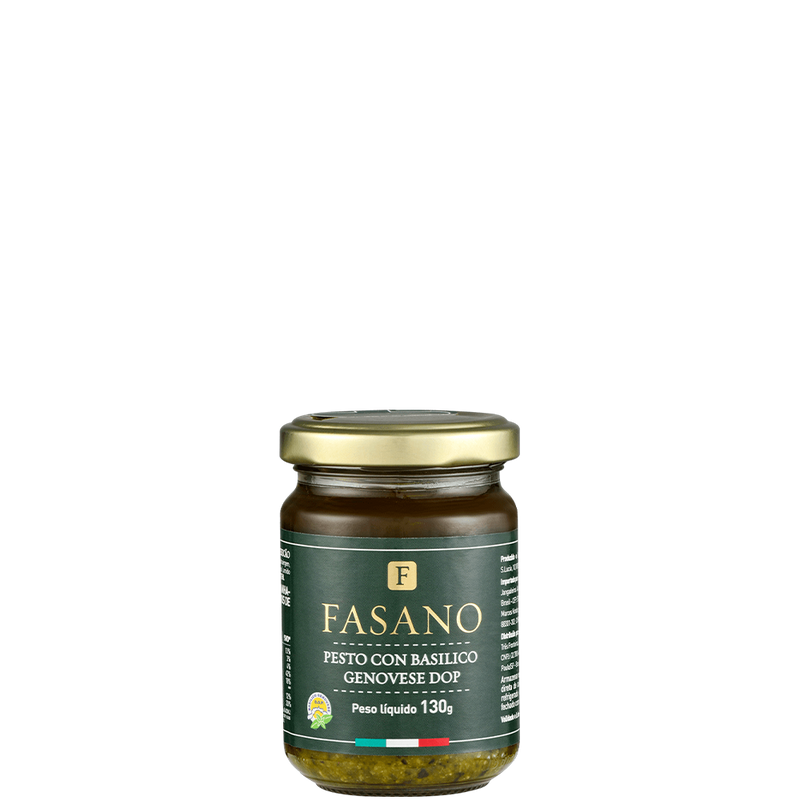 O molho pesto é originário de Gênova, na Ligúria, norte da Itália. A receita deste pesto foi feita como as tradicionais italianas, com um toque pessoal de Rogério Fasano e do chef Luca Gozzani do restaurante Fasano. Além disso, é produzido com folhas de manjericão provenientes de Gênova, por isso recebe o selo DOP. Acompanha perfeitamente massas, sanduíches e antepastos.