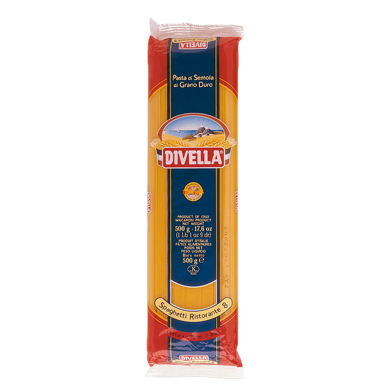 As massas Divella são feitas exclusivamente de grano duro e 100% italianas. O spaghettini, quando comparado ao spaghetti tradicional, é menor cerca de 1,5 mm. É servido geralmente com molhos leves de tomate ou a base de frutos do mar.